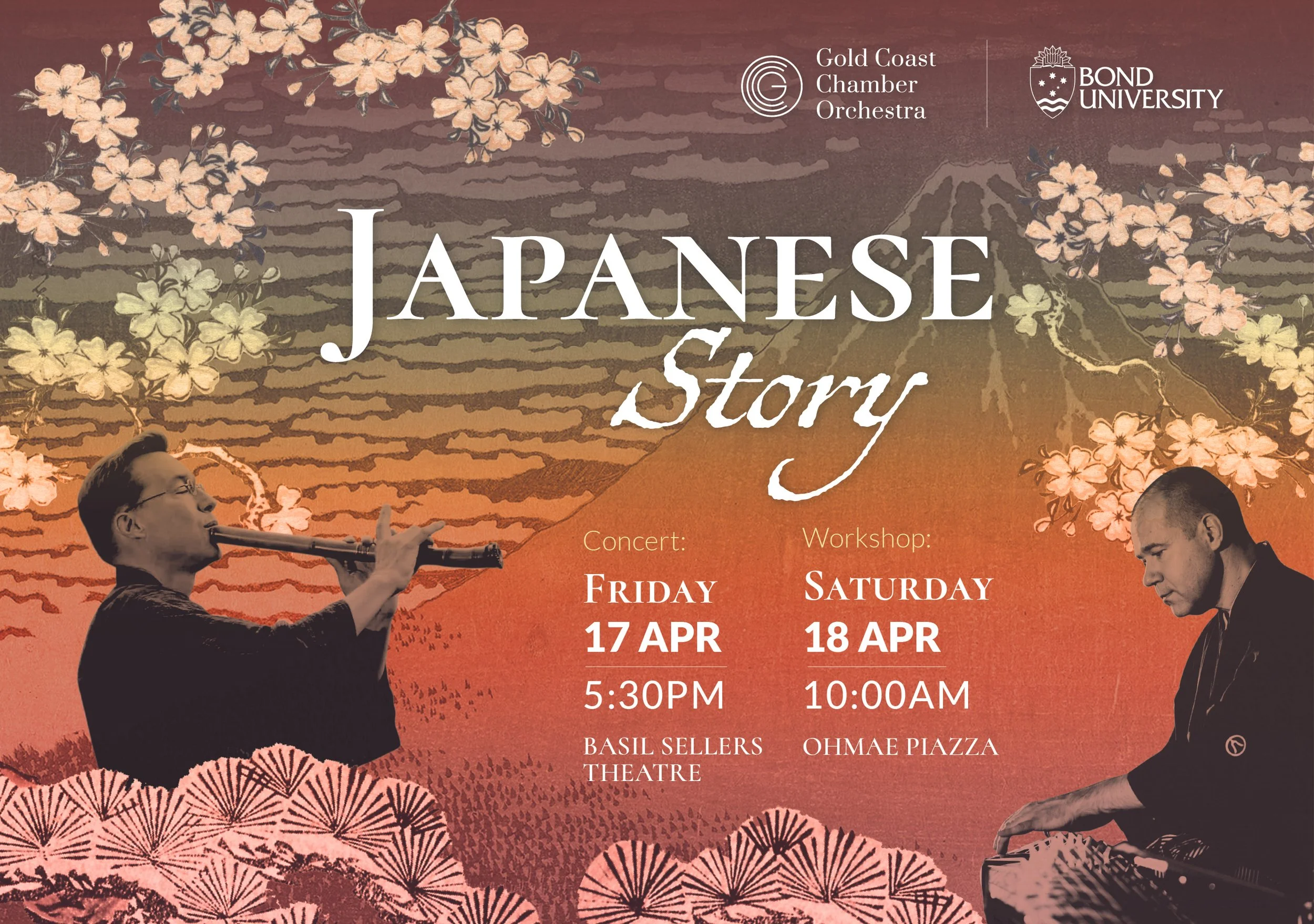 GCCO welcomes Tokyo-based artists Curtis Patterson and Bruce Huebner for Japanese Story, blending Western classical strings with the evocative sounds of shakuhachi and koto. This collaboration offers a fusion of Eastern and Western musical traditions.